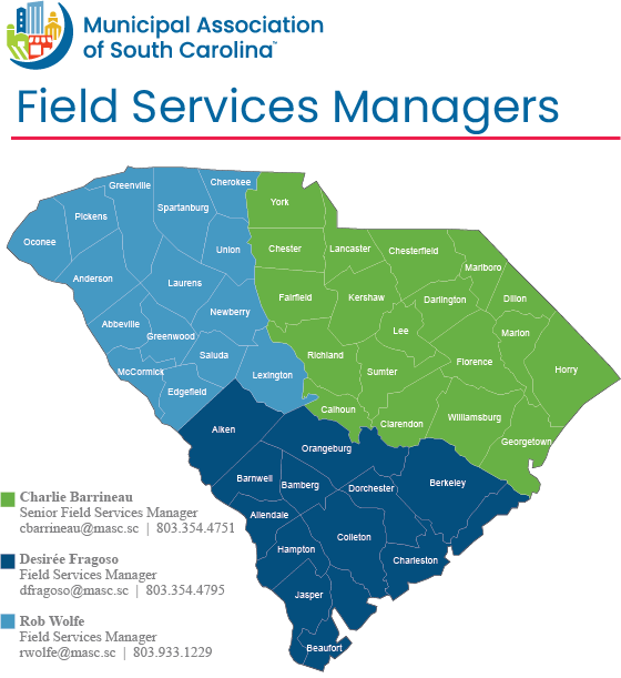 Assigned a specific region in the state, the field services managers visit municipal officials to help address issues of local concern.