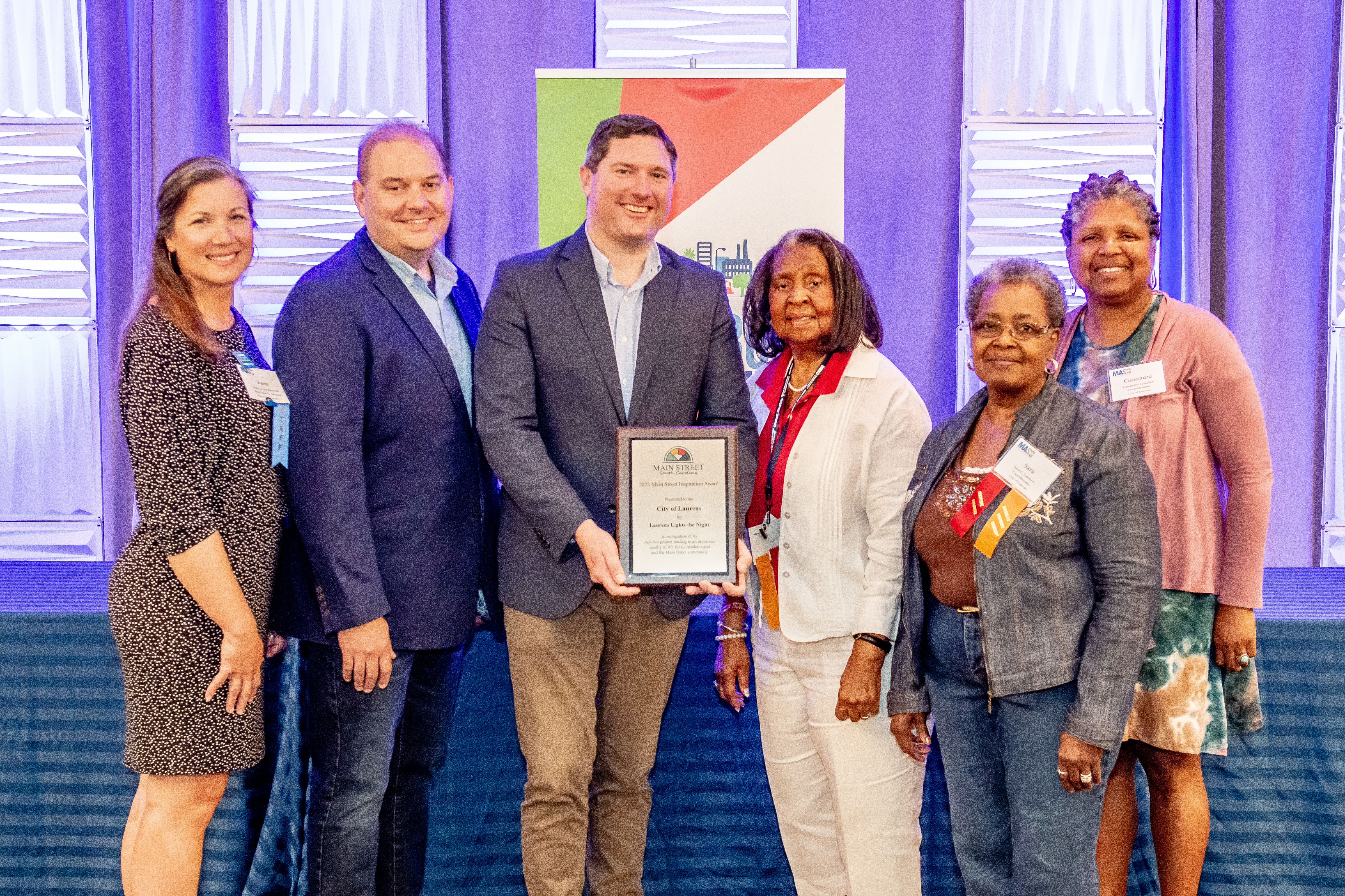 Main Street South Carolina recognized Laurens’ Lights Up the Night event with the Excellence on Main Street Award. This award recognizes the top project from among the winners in eight categories of the annual Main Street Inspiration Awards.