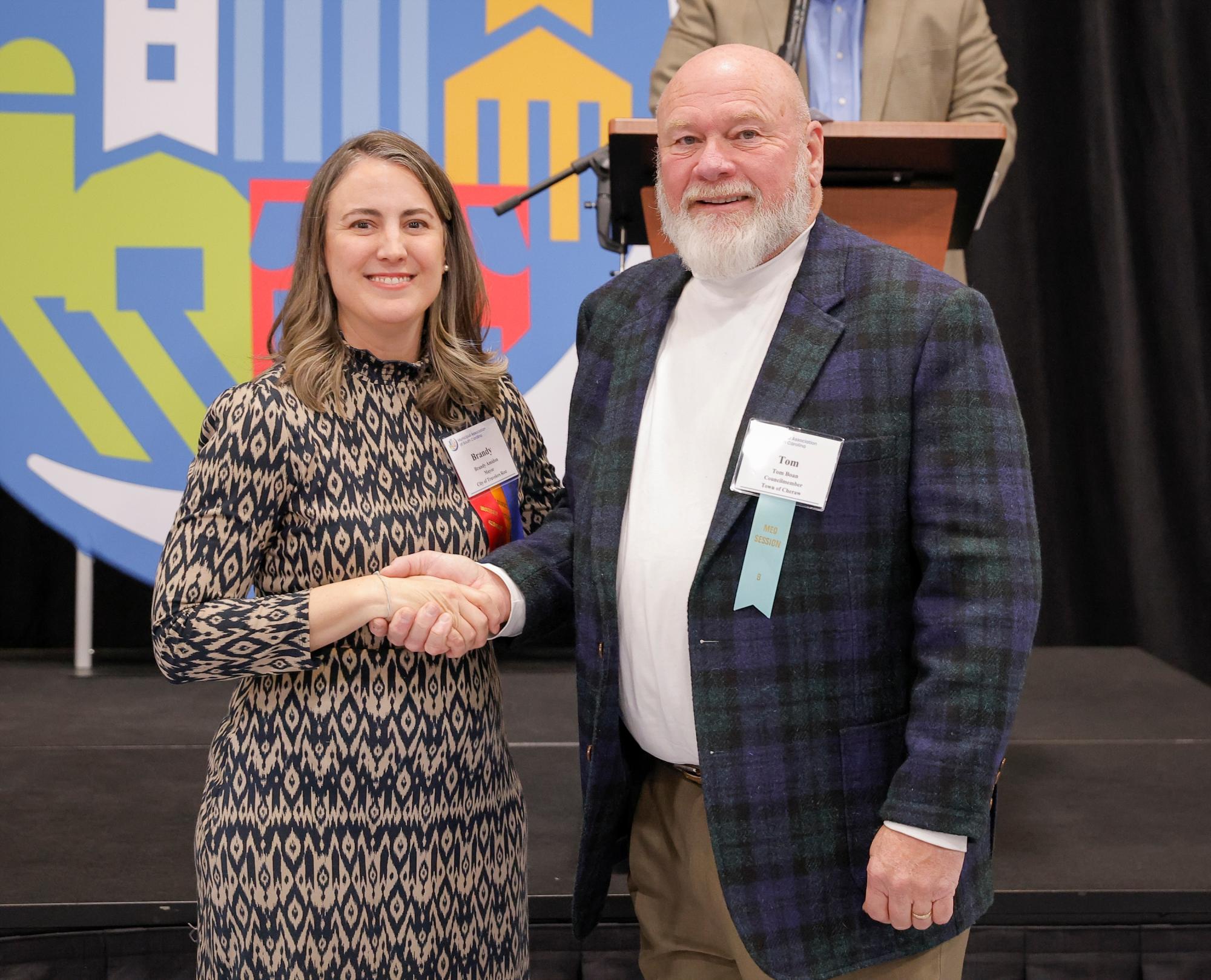Councilmember Tom Boan and Mayor Brandy Amidon, Municipal Association President. (Download photo).