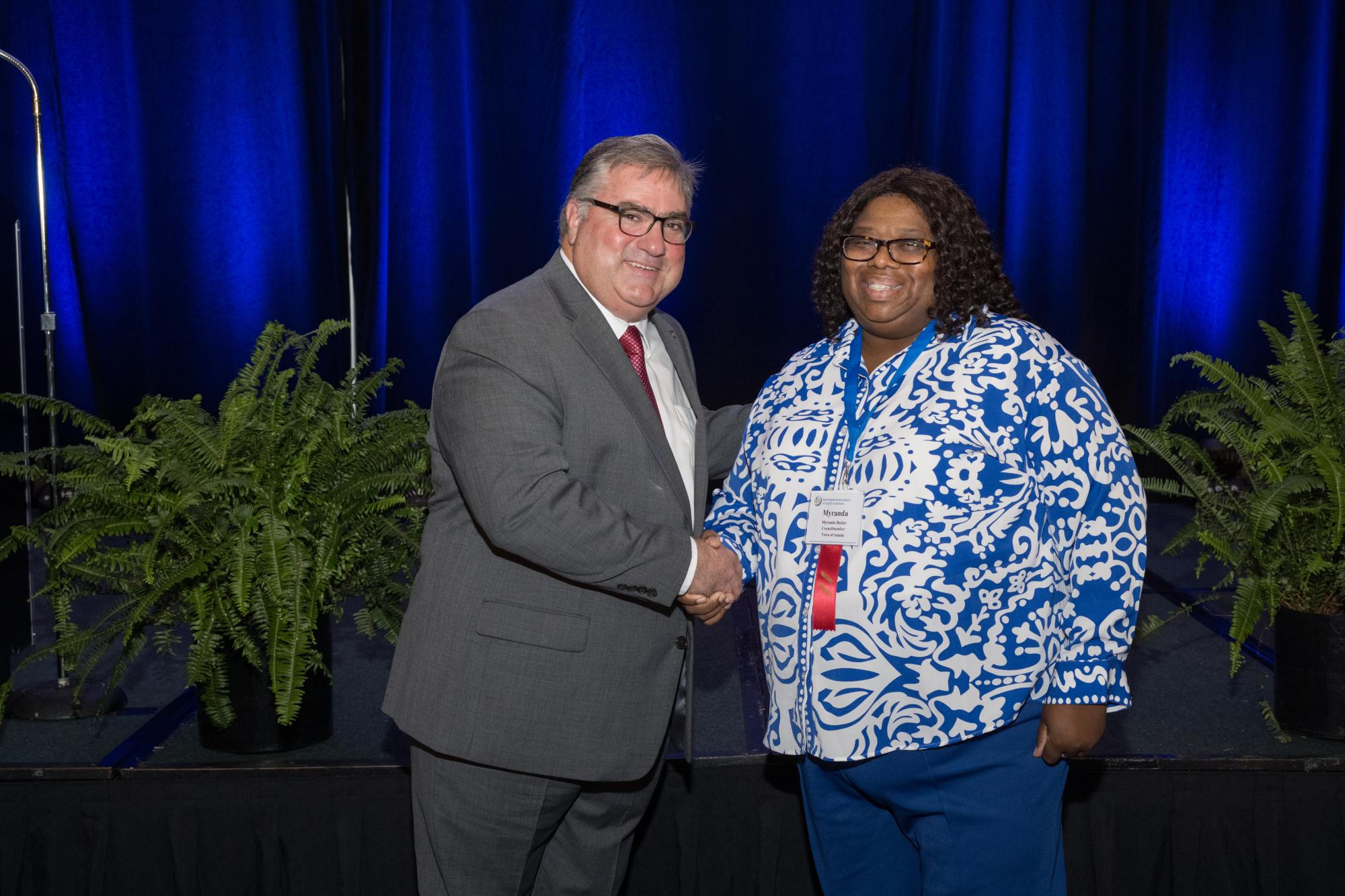 Councilmember Myranda Butler and Mayor Greg Habib, Municipal Association President. (Download photo).