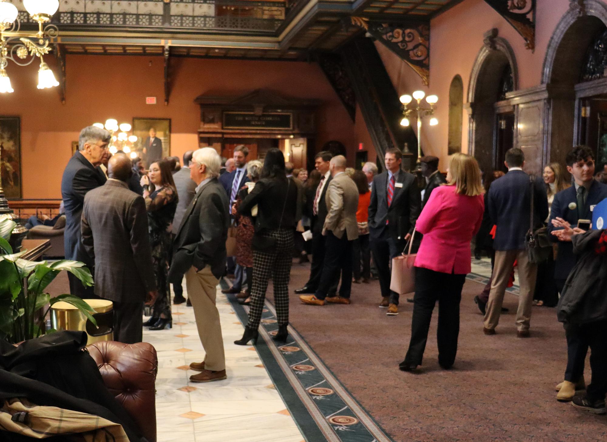 Municipal officials visit with their legislative delegations at the State House during HLAD.