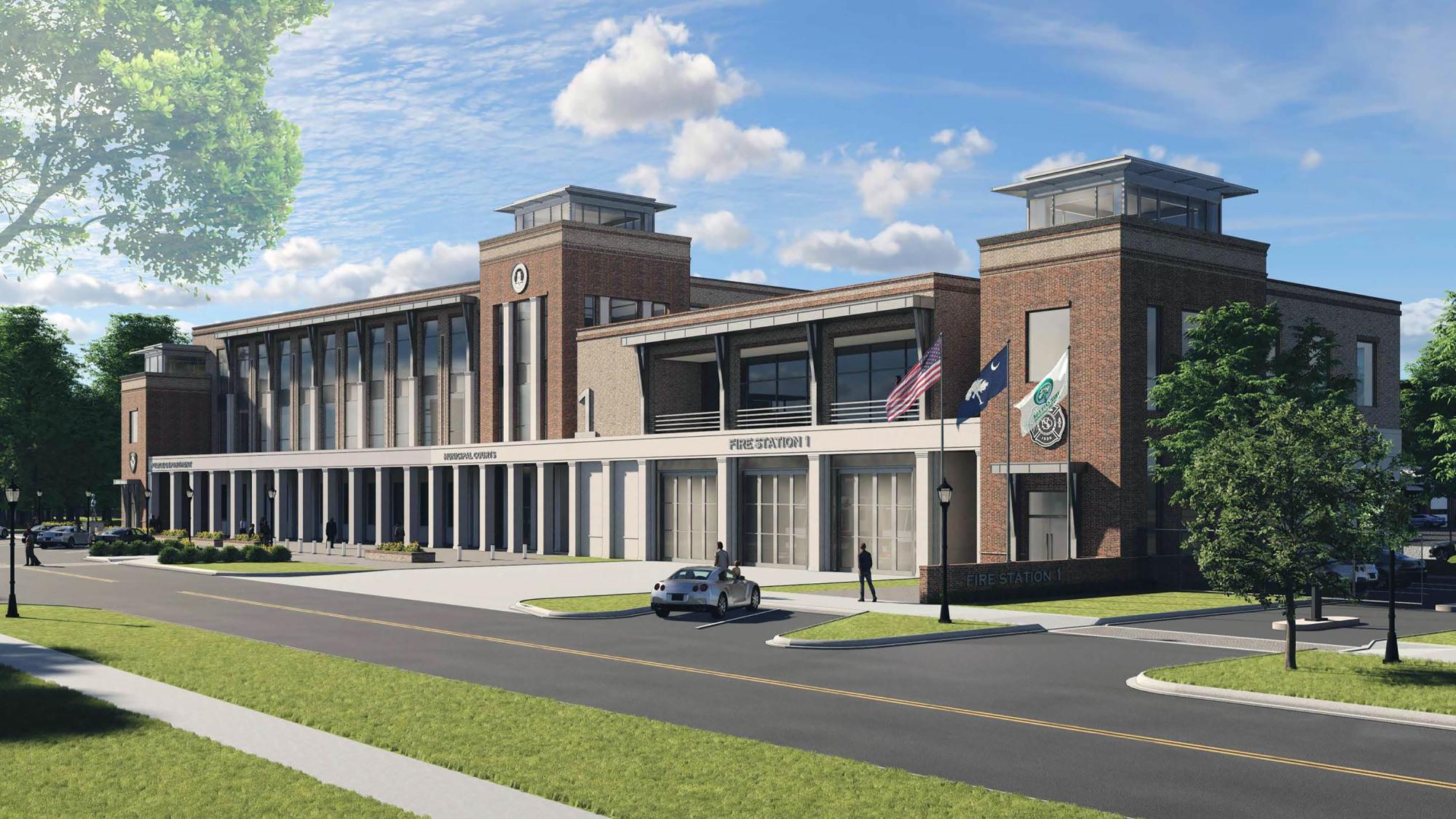 The current facility will be torn down and the new building, which will house the police and fire departments along with courts, will be built on the existing public safety building site. The new facility will include space for meeting and training areas, a large lobby space, community rooms and greenspace.