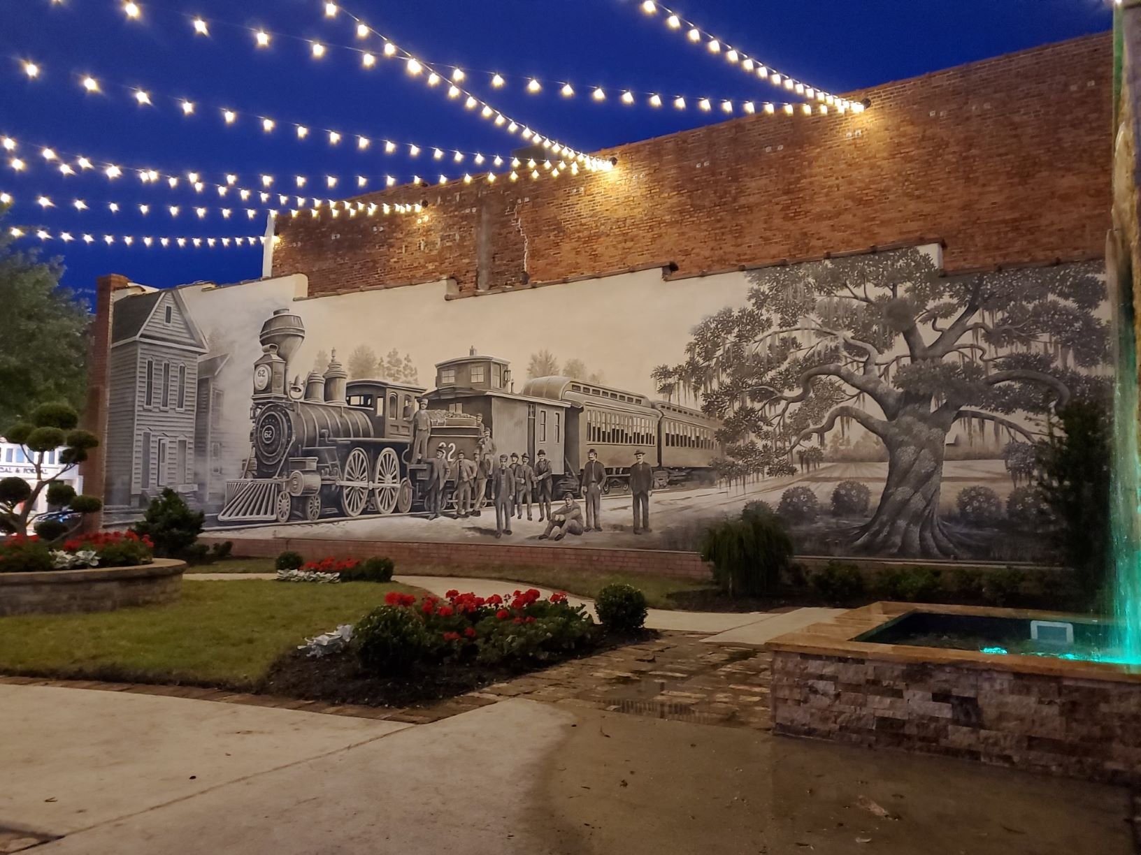 A mural commemorating Conway's railroad history is a focal point in the renovated Kingston Park. Photo: City of Conway.