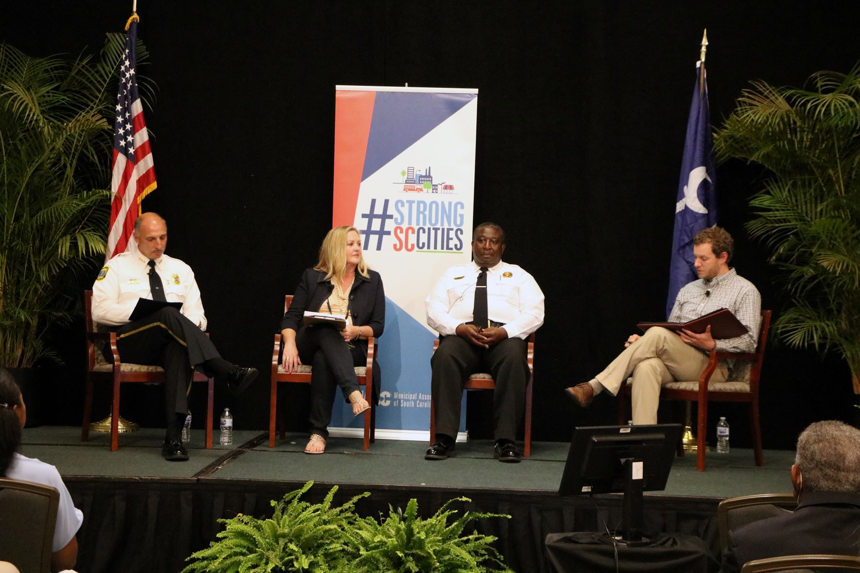 From left: Columbia Police Chief Skip Holbrook, Bluffton Public Information Officer Debbie Szpanka, Williamston Police Chief Tony Taylor and North Charleston Public Relations and
