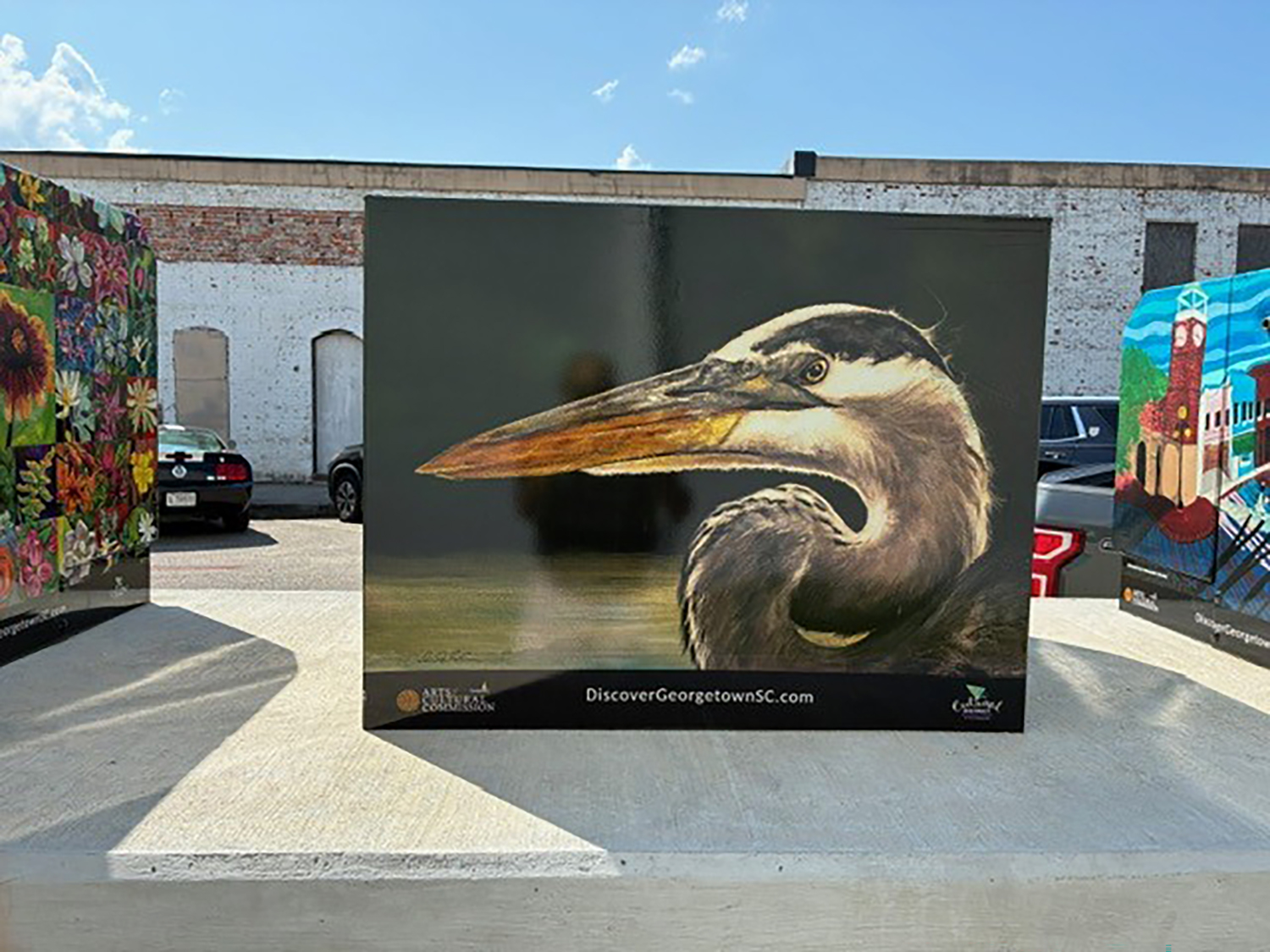 For example, Georgetown’s commission spearheaded a project that uses original, local art to wrap the electrical transformers throughout the historic business district. The first one was outside the Gullah Museum, using artwork from the museum’s founder. Another shows shrimp boats, a nod to the industry that was once thriving in the city.